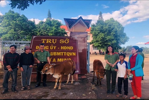 Công an huyện Ea H’leo trao tặng bò giống cho người dân có hoàn cảnh khó khăn trong mô hình dân vận khéo “Ba đồng hành”