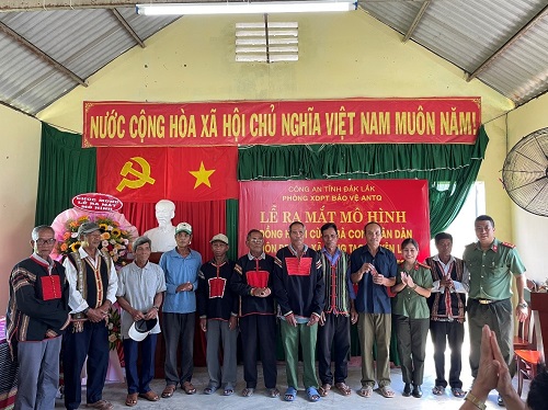 Phòng Xây dựng phong trào bảo vệ ANTQ phối hợp Công đoàn Công an tỉnh trao tặng móc khóa an ninh gắn mã QR Zalo “Xây dựng phong trào bảo vệ ANTQ Đắk Lắk” cho người dân Buôn Drung, Yang Tao, Lắk