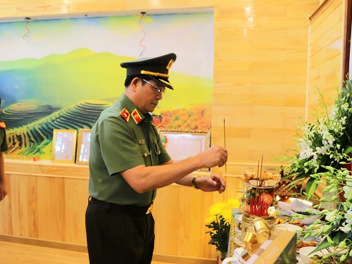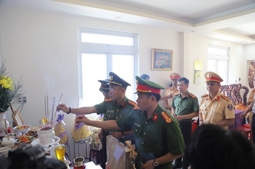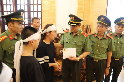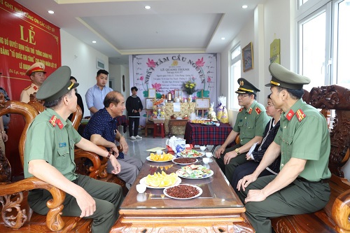 Tại nhà các Liệt sĩ, đồng chí Giám đốc Công an tỉnh và đoàn công tác đã gửi lời chia buồn sâu sắc nhất đến thân nhân, gia đình các Liệt sĩ và tỏ lòng tiếc thương đối với những cán bộ, chiến sỹ đã hy sinh vì sự bình yên của Nhân dân, vì sự nghiệp bảo vệ an ninh Tổ quốc.