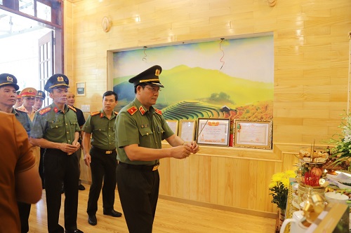 Hình ảnh Thiếu tướng Lê Vinh Quy, Giám đốc Công an tỉnh cùng đoàn công tác đến thăm động viên gia đình các Liệt sĩ