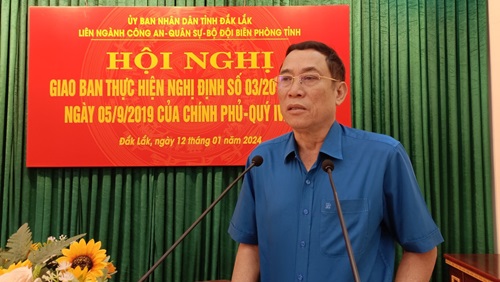 Ngày 12/01/2024, UBND tỉnh Đắk Lắk vừa tổ chức Hội nghị giao ban quý IV/2023 giữa 3 lực lượng Công an, Quân sự, Bộ đội Biên phòng thực hiện quy chế phối hợp theo Nghị định 03/2019/NĐ-CP của Chính phủ về phối hợp trong thực hiện nhiệm vụ bảo vệ an ninh quốc gia, bảo đảm trật tự xã hội, đấu tranh phòng, chống tội phạm và nhiệm vụ quốc phòng. Đồng chí Võ Văn Cảnh - Phó Chủ tịch UBND tỉnh dự và chỉ đạo hội nghị.