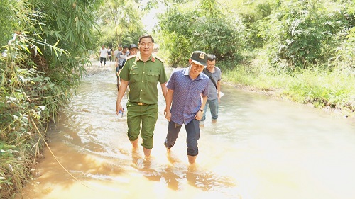 Đại tá Nguyễn Văn Bôn – Phó Giám đốc, Thủ trưởng Cơ quan Cảnh sát điều tra Công an tỉnh (đội mũ cối, ngoài cùng bên trái) đã trực tiếp đến hiện trường chỉ đạo công tác điều tra