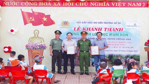 Sau gần hai tháng thi công, công trình “Xây đắp ước mơ đến trường số 05” do Phòng Hậu cần Công an tỉnh Đắk Lắk cùng Công an huyện Krông Ana phối hợp với các nhà hảo tâm thực hiện đã hoàn thành. Hoà chung không khí phấn khởi, Lễ Khánh thành, bàn giao đưa vào sử dụng công trình trên giữa đơn vị thực hiện và đơn vị sử dụng là Điểm trường mầm non Hoa Hồng, chính quyền, nhân dân xã Băng ADrênh, huyện Krông Ana đã được tổ chức trang trọng và ấm cúng.