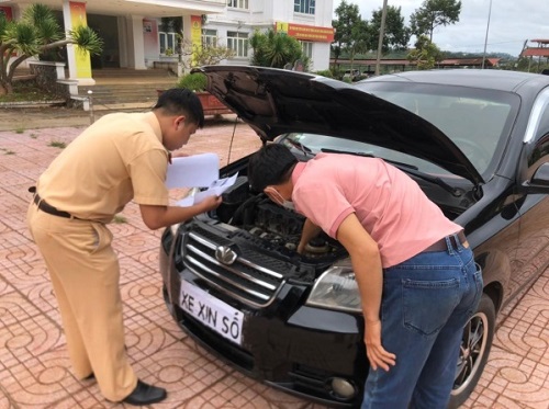 Lực lượng Cảnh sát giao thông kiểm tra số khung, số máy của phương tiện ô tô đến đăng ký