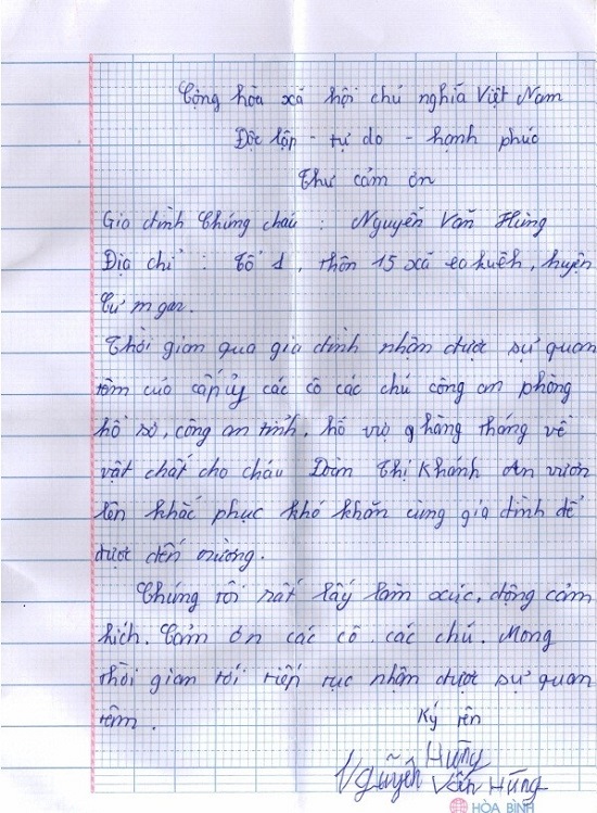 Thư cảm ơn của gia đình cháu An