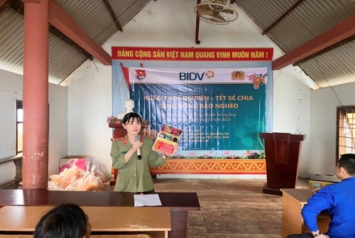 Ngày 14/01/2023, Đoàn thể Phòng Kỹ Thuật nghiệp vụ, Phòng Thanh tra và Ủy ban kiểm tra Đảng ủy Công an tỉnh đã phối hợp với Chi đoàn BIDV Ban Mê tổ chức hoạt động tuyên truyền pháp luật và phát tờ rơi về các hoạt động vi phạm pháp luật liên quan đến pháo nổ tại Buôn Riăng, xã Ea Bông, huyện Krông Ana.
