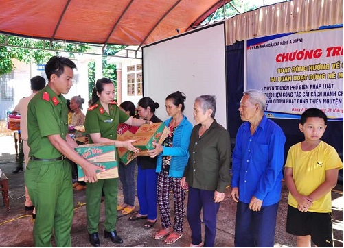 Trong đợt này, Công an huyện đã tổ chức tuyên truyền, phổ biến về Luật An ninh mạng, Luật Giao thông đường bộ, Luật PCCC; Luật Cư trú; Luật Quản lý, sử dụng vũ khí, vật liệu nổ và công cụ hỗ trợ; các quy định về đăng ký, cấp CMND, hộ khẩu; tuyên truyền phòng, chống đuối nước, vi phạm pháp luật về pháo và hoạt động tín dụng đen. Cùng với đó, CBCS Công an huyện đã tổ chức cấp, cấp đổi, cấp mới 100 CMND cho người già, người bệnh tật và các em học sinh đến tuổi; tặng 01 chiếc xe đạp cho 01 em học sinh nghèo vượt khó, tặng 20 suất quà cho các hộ nghèo, tặng quà cho 87 học sinh giỏi trên địa bàn xã; cắt tóc miễn phí cho các cháu nhỏ và tổ chức lao động dọn vệ sinh công cộng.