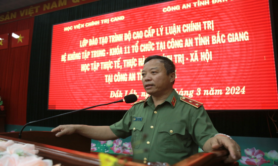 Trung tướng, PGS TS Phan Xuân Tuy, Bí thư Đảng ủy, Giám đốc Học viện chính trị CAND phát biểu cảm ơn Công an tỉnh Đắk Lắk