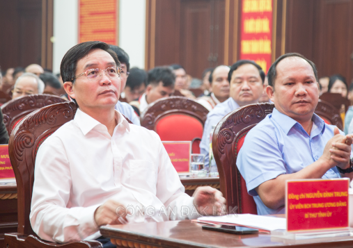 Trung tướng Lê Quốc Hùng, Uỷ viên Trung ương Đảng, Thứ trưởng Bộ Công an, Trưởng Ban Chỉ đạo thực hiện phong trào toàn dân bảo vệ an ninh Tổ quốc Trung ương và đồng chí Nguyễn Đình Trung, Uỷ viên Trung ương Đảng, Bí thư Tỉnh uỷ Đắk Lắk dự và chỉ đạo tại Hội nghị.
