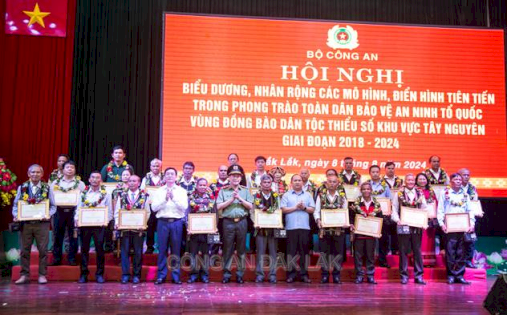 Nhân dịp này, Ban tổ chức đã trao Bằng khen của Bộ trưởng Bộ Công an cho 86 tập thể, cá nhân tiêu biểu đại diện cho các mô hình, điển hình tiên tiến đã có thành tích xuất sắc trong phong trào toàn dân bảo vệ ANTQ vùng đồng bào dân tộc thiểu số 5 tỉnh Tây Nguyên, giai đoạn 2018-2024.