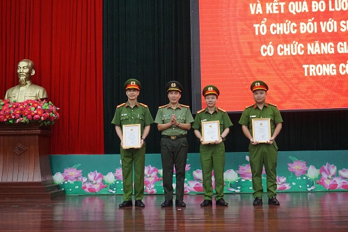 Tại Hội nghị, Giám đốc Công an tỉnh quyết định tặng Giấy khen cho 24 tập thể, 43 cá nhân có thành tích xuất sắc trong công tác CCHC, hoạt động Trang Thông tin điện tử Công an tỉnh và tích cực hưởng ứng Cuộc thi viết “Tìm hiểu công tác cải cách hành chính” năm 2022; Ban Tổ chức Cuộc thi quyết định công nhận và trao giải cho 03 tập thể tích cực tham gia Cuộc thi, 16 tác giả, nhóm tác có bài dự thi xuất sắc.