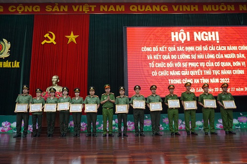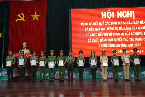 Sáng ngày 29/11/2022, Công an tỉnh Đắk Lắk tổ chức Hội nghị công bố Chỉ số cải cách hành chính, kết quả đo lường sự hài lòng của tổ chức, cá nhân đối với đơn vị có chức năng giải quyết thủ tục hành chính và tổng kết, trao giải vòng sơ khảo Cuộc thi viết “Tìm hiểu công tác cải cách hành chính” năm 2022.