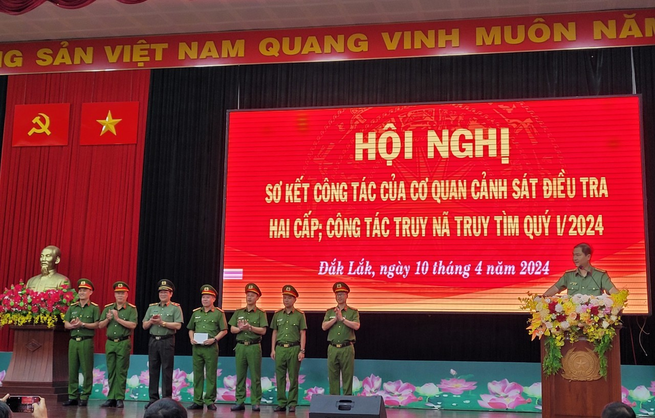Nhằm kịp thời đánh giá tình hình hoạt động của các loại tội phạm, vi phạm pháp luật về trật tự an toàn xã hội trên địa bàn tỉnh, kết quả các mặt công tác Quý I/2024, dự báo tình hình, triển khai các nhiệm vụ công tác trọng tâm trong thời gian tới, đặc biệt là đề ra những giải pháp quyết tâm kéo giảm 05% tội phạm xâm phạm trật tự xã hội trên địa bàn tỉnh; chiều ngày 10/4/2024, Cơ quan Cảnh sát điều tra Công an tinh Đắk Lắk tổ chức Hội nghị sơ kết công tác của Cơ quan Cảnh sát điều tra hai cấp; công tác truy nã truy tìm Quý I/2024 và đánh giá tình hình tội phạm, đề ra các giải pháp kéo giảm tội phạm xâm phạm trật tự xã hội trên địa bàn tỉnh năm 2024; đồng thời khen thưởng đột xuất cho tập thể có thành tích xuất sắc trong công tác đấu tranh phòng, chống tội phạm.