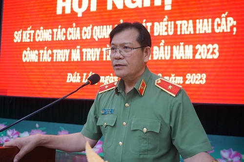 Phát biểu khai mạc Hội nghị, đồng chí Đại tá Nguyễn Văn Bôn - Phó Bí thư Đảng ủy, Phó Giám đốc, Thủ trưởng Cơ quan Cảnh sát điều tra Công an tỉnh đã đánh giá kết quả công tác 6 tháng đầu năm 2023, lực lượng Cảnh sát điều tra toàn tỉnh đã bám sát sự lãnh đạo, chỉ đạo của Đảng ủy, lãnh đạo Công an tỉnh, nỗ lực, đồng lòng, thống nhất từ tỉnh đến huyện, xã; triển khai thực hiện quyết liệt, hiệu quả đợt cao điểm tấn công, trấn áp tội phạm, bảo đảm an ninh, trật tự thời điểm trước, trong và sau dịp Tết Nguyên đán Quý Mão 2023; tập trung lực lượng, triển khai phương án bảo vệ tuyệt đối an toàn phục vụ tổ chức thành công Lễ hội Cà phê Buôn Ma Thuột lần thứ 8 năm 2023, các sự kiện quan trọng và các ngày lễ kỷ niệm trên địa bàn tỉnh; hoàn thành và hoàn thành vượt mức nhiều chỉ tiêu, yêu cầu, nhiệm vụ công tác trọng tâm, kết quả nổi bật là: