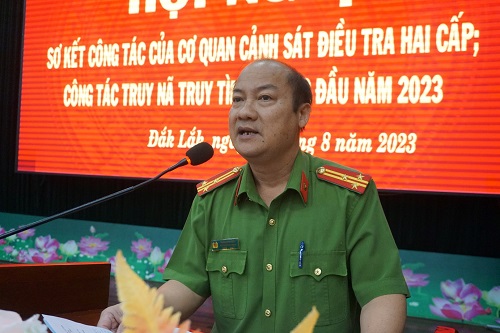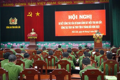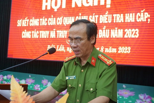 Sáng ngày 04/8/2023, Cơ quan Cảnh sát điều tra Công an tỉnh Đắk Lắk tổ chức Hội nghị sơ kết công tác của Cơ quan Cảnh sát điều tra hai cấp; công tác truy nã truy tìm 6 tháng đầu năm và triển khai nhiệm vụ 6 tháng cuối năm 2023, đồng chí Thiếu tướng Lê Vinh Quy - Giám đốc Công an tỉnh dự và chỉ đạo Hội nghị; đồng chí Đại tá Nguyễn Văn Bôn - Phó Bí thư Đảng ủy, Phó Giám đốc, Thủ trưởng Cơ quan Cảnh sát điều tra Công an tỉnh, chủ trì Hội nghị; tham dự Hội nghị còn có đại diện lãnh đạo các phòng nghiệp vụ Công an tỉnh; lãnh đạo Cơ quan Cảnh sát điều tra Công an cấp huyện; Chỉ huy các Đội nghiệp vụ điều tra các đơn vị, Công an huyện, thị xã, thành phố.