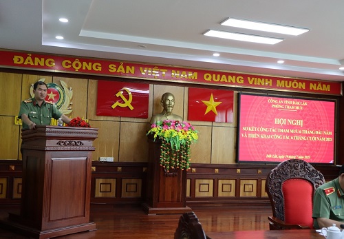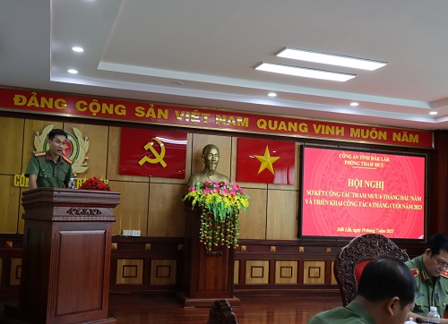 Hội nghị được nghe đồng chí Thượng tá Hoàng Thành Sơn - Phó Trưởng phòng Tham mưu trình bày Báo cáo tóm tắt kết quả công tác tham mưu 6 tháng đầu năm 2023 và triển khai công tác 6 tháng cuối năm 2023 và đồng chí Trung tá Nguyễn Thanh Hải – Phó Bí thư Đảng ủy, Phó Trưởng phòng Tham mưu điều hành nội dung tham luận tại Hội nghị. Trong 6 tháng đầu năm 2023, thực hiện chỉ đạo của Đảng ủy, lãnh đạo Công an tỉnh, Phòng Tham mưu đã làm tốt công tác tham mưu xây dựng chương trình, kế hoạch triển khai các biện pháp công tác; đồng thời, tập trung nắm tình hình, nghiên cứu, phân tích, đánh giá để kịp thời báo cáo, đề xuất lãnh đạo Công an tỉnh tham mưu Tỉnh ủy, UBND tỉnh chỉ đạo các sở, ban, ngành tích cực phối hợp với lực lượng Công an triển khai đồng bộ các chủ trương, giải pháp đảm bảo ANTT trên địa bàn, góp phần thực hiện nhiệm vụ chính trị trong năm 2023.