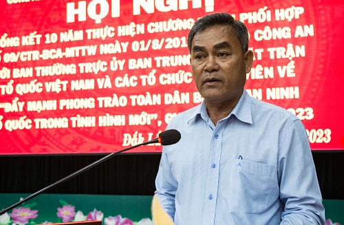 Phát biểu tại hội nghị, đồng chí Y Biêr niê, Phó Bí thư tỉnh ủy ghi nhận và đánh giá cao kết quả 10 năm thực hiện Chương trình phối hợp số 09 của lực lượng Công an tỉnh, Ủy ban Mặt trận Tổ quốc tỉnh và các tổ chức thành viên. Trong thời gian tới, đồng chí đề nghị lực lượng Công an, Mặt trận Tổ quốc và các tổ chức thành viên tiếp tục duy trì công tác phối hợp theo hướng ngày càng phát huy hiệu quả. Thường xuyên tuyên truyền, vận động cán bộ, đoàn viên, hội viên và Nhân dân thực hiện nghiêm đường lối, chủ trương của Đảng, chính sách, pháp luật của nhà nước, nâng cao ý thức cảnh giác, trách nhiệm và năng lực bảo vệ an ninh, phát hiện, đấu tranh ngăn chặn âm mưu chống phá của các thế lực thù địch, phản động và các loại tội phạm, tệ nạn xã hội, góp phần giữ vững an ninh chính trị, bảo đảm trật tự, an toàn xã hội; Tiếp tục duy trì và nhân rộng mô hình, điển hình hay trong phong trào toàn dân bảo vệ an ninh Tổ quốc. Phối hợp tham mưu cấp ủy, chính quyền các cấp phát huy vai trò của bí thư chi bộ, trưởng các đoàn thể, trưởng thôn, trưởng bản, người có uy tín, các chức sắc, chức việc trong tôn giáo, dân tộc làm hạt nhân, chỗ dựa của Nhân dân trong phong trào toàn dân bảo vệ an ninh Tổ quốc. Bồi dưỡng nâng cao trình độ, năng lực chuyên môn, kiến thức, nghiệp vụ, pháp luật trong phong trào toàn dân bảo vệ an ninh Tổ quốc cho lực lượng làm nhiệm vụ bảo vệ an ninh, trật tự ở cơ sở.