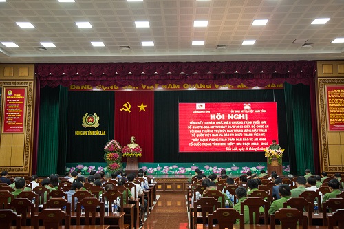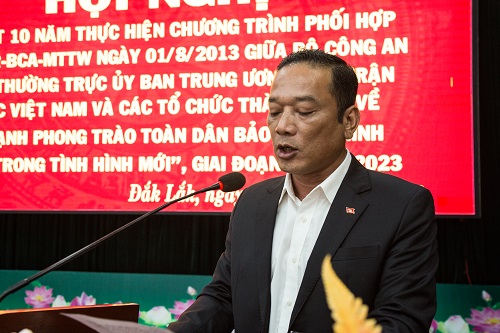 Công an Tỉnh Đắk Lắk vừa phối hợp với Ủy Ban Mặt trận Tổ quốc Việt Nam tỉnh tổ chức hội nghị tổng kết 10 năm thực hiện Chương trình phối hợp số 09 ngày 01/8/2013 giữa Bộ Công an với Ban Thường trực Ủy ban Trung ương Mặt trận Tổ quốc Việt Nam và các tổ chức thành viên về “Đẩy mạnh phong trào toàn dân bảo vệ an ninh Tổ quốc trong tình hình mới”, giai đoạn 2013-2023. Tham dự hội nghị có các đồng chí Y Biêr Niê, Phó Bí thư Tỉnh ủy; đồng chí Thiếu tướng Lê Vinh Quy, Uỷ viên Ban Thường vụ Tỉnh ủy, Giám đốc công an tỉnh; Trần Phú Hùng, Phó chủ tịch HĐND tỉnh; Y Giang Gry niê Knơng, Chủ tịch Ủy Ban Mặt trận tổ quốc Việt Nam tỉnh.