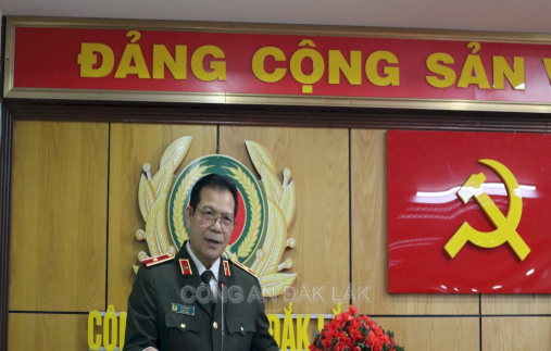 Đ/c Thiếu tướng Lê Vinh Quy - Ủy viên Ban Thường vụ Tỉnh ủy, Bí thư Đảng ủy, Giám đốc Công an tỉnh phát biểu chỉ đạo tại Hội nghị