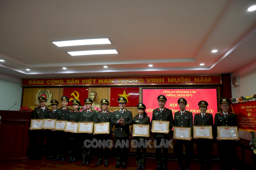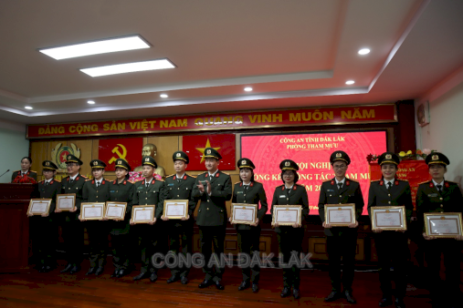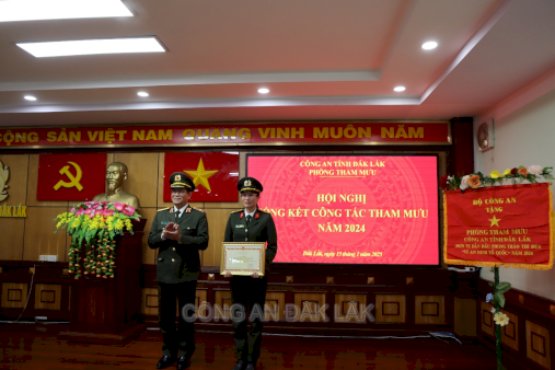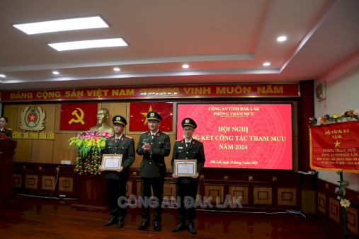 Phát biểu chỉ đạo tại Hội nghị, đồng chí Thiếu tướng Lê Vinh Quy - Ủy viên Ban Thường vụ Tỉnh ủy, Bí thư Đảng ủy, Giám đốc Công an tỉnh ghi nhận, biểu dương sự nỗ lực, cố gắng của tập thể Phòng Tham mưu đồng thời yêu cầu trong thời gian tới Phòng Tham mưu tiếp tục triển khai đồng bộ các mặt công tác; chủ động phối hợp, trao đổi, tiếp nhận, phân tích, xử lý kịp thời các thông tin, tình hình liên quan công tác công an; đánh giá, dự báo sát tình hình, chủ động tham mưu, đề xuất các chủ trương, giải pháp đảm bảo ANTT và xây dựng lực lượng, hậu cần Công an tỉnh; tăng cường công tác hướng dẫn, kiểm tra, đôn đốc các đơn vị, Công an huyện, thị xã, thành phố trong việc thực hiện các chỉ thị, mệnh lệnh, chương trình, kế hoạch công tác của Công an tỉnh. Cũng trong Hội nghị, đồng chí Giám đốc Công an tỉnh cùng lãnh đạo đơn vị đã trao tặng bằng khen đối với 01 tập thể, danh hiệu Đơn vị quyết thắng đối với 06 tập thể, 15 Chiến sĩ thi đua cơ sở, 02 Chi bộ hoàn thành xuất sắc nhiệm vụ, 16 đảng viên hoàn thành xuất sắc nhiệm vụ trong năm 2024.