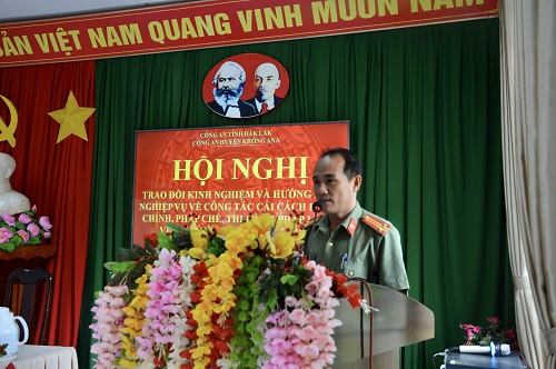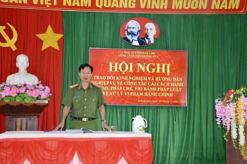Ngày 09/12/2022, Công an huyện Krông Ana tổ chức Hội nghị “trao đổi kinh nghiệm, hướng dẫn nghiệp vụ về công tác cải cách hành chính, pháp chế, thi hành pháp luật về xử lý vi phạm hành chính”. Đồng chí Thượng tá Lê Văn Tuấn – Trưởng Công an huyện - Chủ trì Hội nghị. Thành phần tham dự Hội nghị gồm có các đồng chí Lãnh đạo Công an huyện, chỉ huy các đội nghiệp vụ, công an xã, thị trấn và cán bộ, chiến sĩ trực tiếp tham mưu thực hiện công tác này.