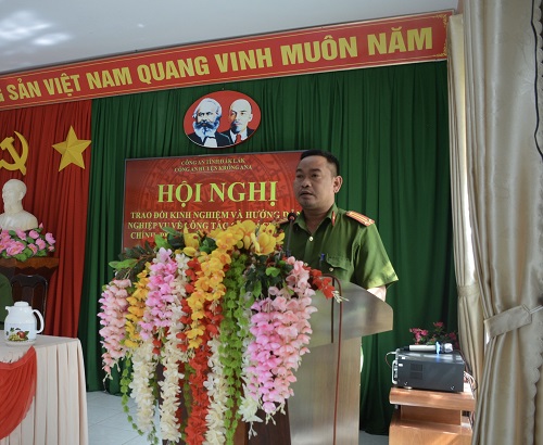 Đồng chí Thượng tá Lê Văn Tuấn – Trưởng Công an huyện phát biểu chỉ đạo tại Hội nghị
