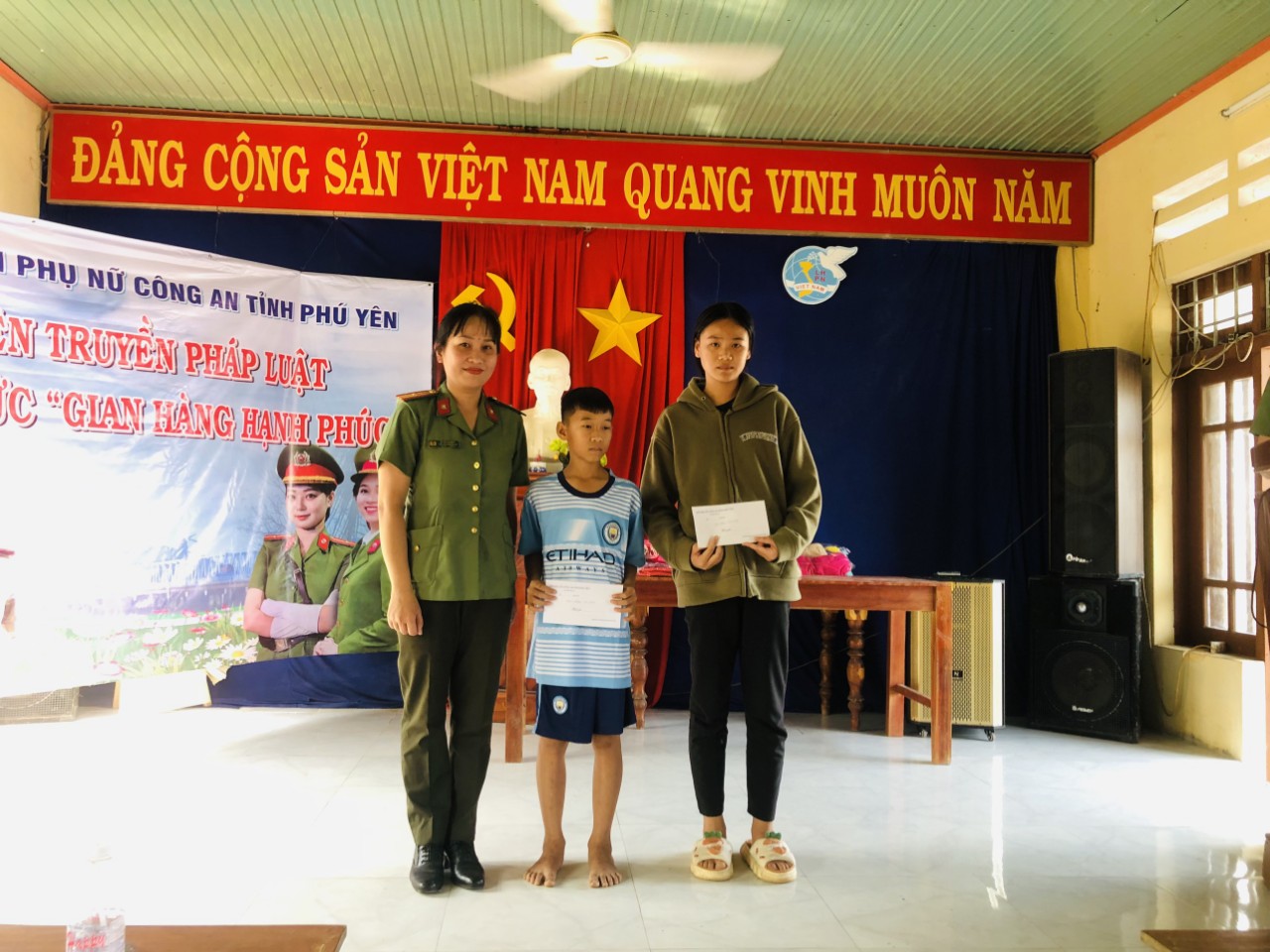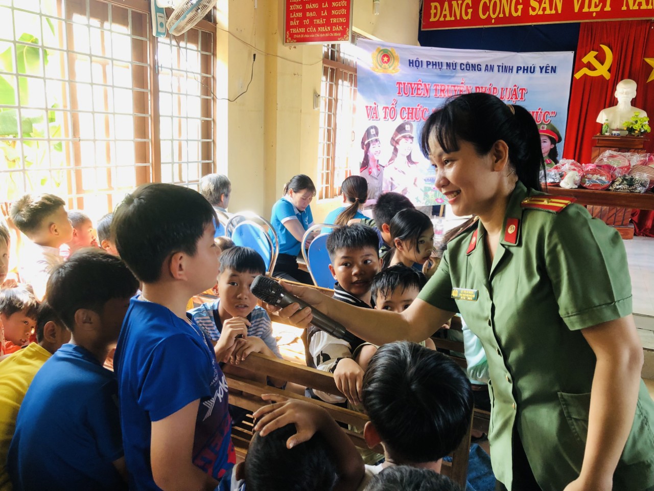 Nhằm tạo sân chơi vui vẻ, bổ ích cho các cháu thiếu nhi thôn Lạc Đạo, xã Sơn Thành Tây; động viên, giúp đỡ một số trẻ em có hoàn cảnh khó khăn tiếp tục đến trường; đồng thời nhằm phát huy mối quan hệ gắn kết giữa lực lượng Công an với cấp ủy, chính quyền địa phương, giữa lực lượng Công an với Nhân dân, vào sáng ngày 26/3/2023, Hội Phụ nữ Công an tỉnh Phú Yên tổ chức hoạt động truyền thông cho trẻ em.
