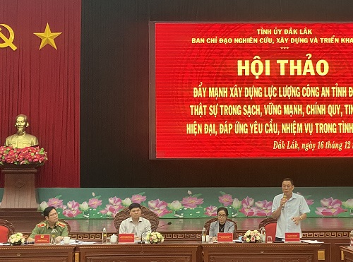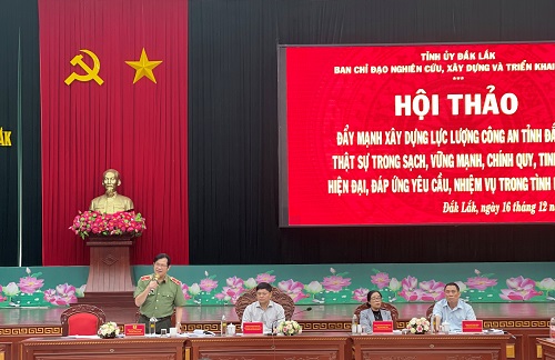 Chiều ngày 16/12/2022, tại Công an tỉnh Đắk Lắk, Tỉnh ủy Đắk Lắk đã tổ chức Hội thảo “Đẩy mạnh xây dựng lực lượng Công an tỉnh Đắk Lắk thật sự trong sạch, vững mạnh, chính quy, tinh nhuệ, hiện đại, đáp ứng yêu cầu, nhiệm vụ trong tình hình mới”.