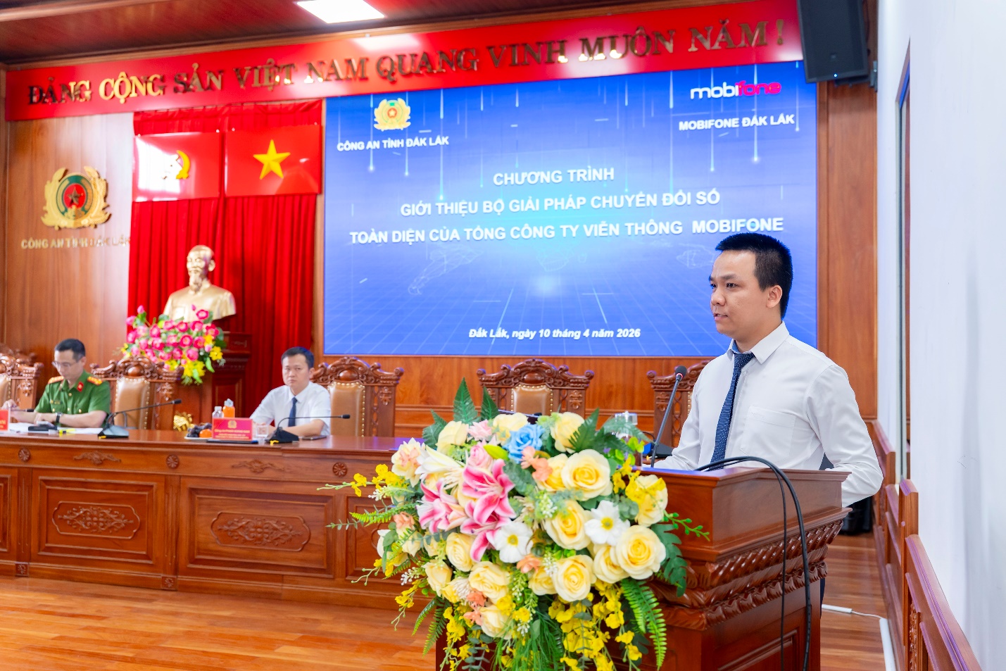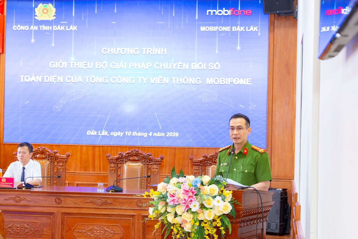 Chiều ngày 10/4/2026, Công an tỉnh Đắk Lắk phối hợp với MobiFone Đắk Lắk tổ chức Hội thảo “Giới thiệu bộ giải pháp chuyển đổi số toàn diện của Tổng công ty Viễn thông MobiFone”.