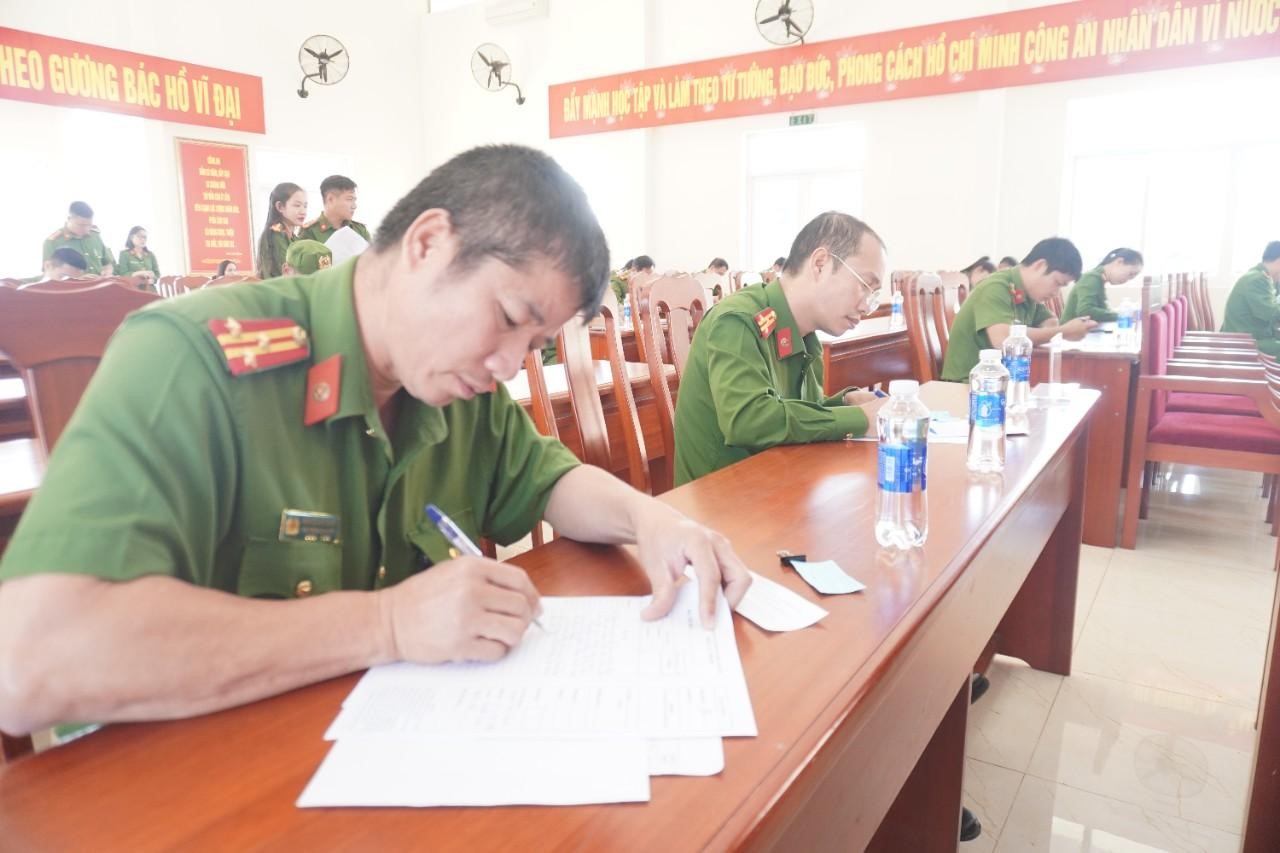 Đồng chí Đại tá Y San Adrơng - Phó Giám đốc Công an tỉnh phát biểu chỉ đạo Hội thi