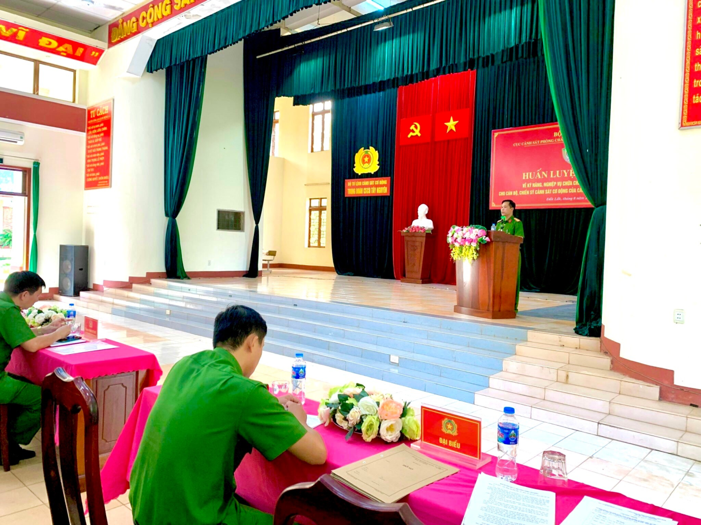 Thực hiện chỉ đạo của Bộ Công an về việc huấn luyện cơ bản kĩ năng nghiệp vụ chữa cháy và cứu nạn, cứu hộ cho CBCS thuộc lực lượng Cảnh sát cơ động và chiến sĩ nghĩa vụ mới năm 2023. Từ ngày 21/8 đến ngày 31/8/2023, Phòng Cảnh sát PCCC và CNCH - Công an tỉnh Đắk Lắk phối hợp với Trung tâm huấn luyện và ứng phó về PCCC và CNCH – Cục Cảnh sát PCCC và CNCH đã tổ chức huấn luyện cho 150 cán bộ, chiến sỹ Trung đoàn Cảnh sát cơ động Tây Nguyên thuộc Bộ Tư lệnh Cảnh sát cơ động tại phường Tân Hoà, thành phố Buôn Ma Thuột, tỉnh Đắk Lắk.
