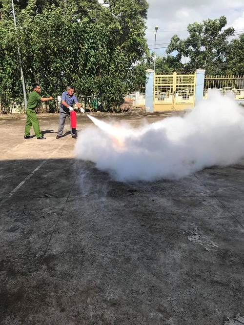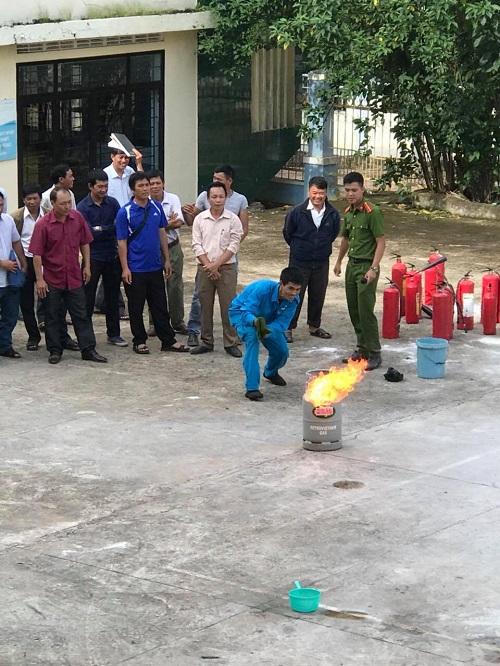 Hướng dẫn học viên cách xử lý tình huống cháy và thực hành sử dụng bình chữa cháy