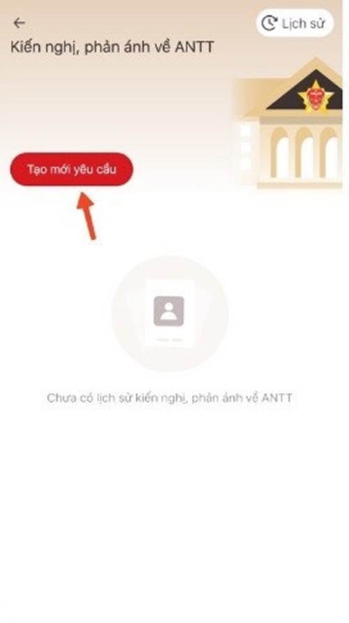 - Bước 3: Chọn “Kiến nghị, phản ánh về ANTT”. Sau đó chọn tạo mới yêu cầu.