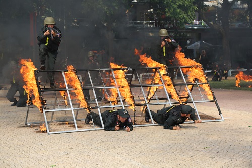 Đ/c Đại tá Vũ Hồng Văn - Giám đốc Công an tỉnh thường xuyên có mặt tại thao trường để chỉ đạo, kiểm tra, đôn đốc, động viên cán bộ, chiến sĩ tập luyện