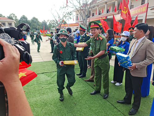 Tại lễ giao nhận quân, các đồng chí lãnh đạo huyện Cư Kuin và gia đình đã tặng hoa chúc mừng các đồng chí tân binh, mong các đồng chí phát huy truyền thống cách mạng của dân tộc, luôn giữ gìn sức khỏe, cố gắng, phấn đấu, rèn luyện tốt, hoàn thành xuất sắc nhiệm vụ. Với sự chuẩn bị chu đáo về mọi mặt, Lễ giao nhận quân năm 2023 của huyện Cư Kuin đã diễn ra trang trọng, ngắn gọn, ý nghĩa và thành công tốt đẹp./.