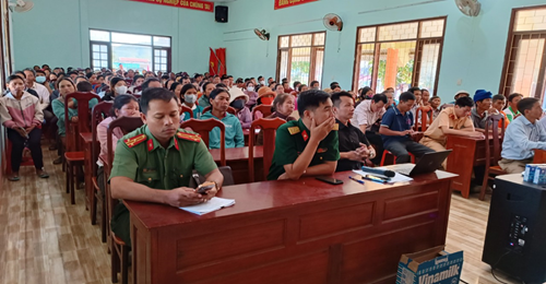 Từ ngày 17/10 đến ngày 31/10/2023, Ban Tuyên giáo Huyện ủy, Công an huyện và Ban Chỉ huy Quân sự huyện phối hợp với Đảng ủy, UBND các xã: Dang Kang, Hòa Phong, Cư Pui, Cư Đrăm và Yang Mao tổ chức tuyên truyền, phát động phong trào toàn dân bảo vệ an Tổ quốc được 20 buổi tại 24 buôn có người đồng bào dân tộc thiểu số tại chỗ sinh sống với hơn 2.200 lượt người tham dự.