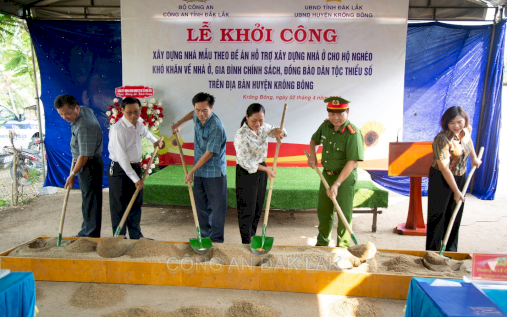 Ngày 02/4/2024, Công an huyện tham mưu cấp ủy, chính quyền địa phương tổ chức Lễ khởi công xây dựng 100 căn nhà tình nghĩa trên địa bàn huyện. Được sự quan tâm, chỉ đạo sâu sắc của cấp ủy, chính quyền địa phương, sự đồng hành của các đơn vị thi công và quần chúng nhân dân, sau gần 03 tháng triển khai, đến ngày 28/6/2024 Công an huyện đã hoàn thành việc xây dựng, bàn giao 100 căn nhà tình nghĩa. Những ngôi nhà hoàn thiện được thiết kế dựa trên cơ sở cải tiến mẫu nhà lắp ghép 36B của Bộ Công an, với tiêu chuẩn nhà “3 cứng” (nền cứng, khung - tường cứng và mái cứng), phù hợp với các điều kiện địa lý, thời tiết, nguồn nguyên vật liệu ở Đắk Lắk. Đồng thời hiệu quả sử dụng lâu bền, phù hợp với phong tục, tập quán sinh hoạt của đồng bào dân tộc thiểu số trên địa bàn huyện.