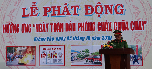 Nằm trong khuôn khổ các hoạt động hưởng ứng “Ngày toàn dân phòng cháy, chữa cháy (PCCC)”, sáng 04/10/2019, tại Quảng trường huyện Krông Pắc, UBND huyện tổ chức Lễ phát động, diễu hành với 500 cán bộ, đoàn viên, đội viên đội PCCC cơ sở tham gia.