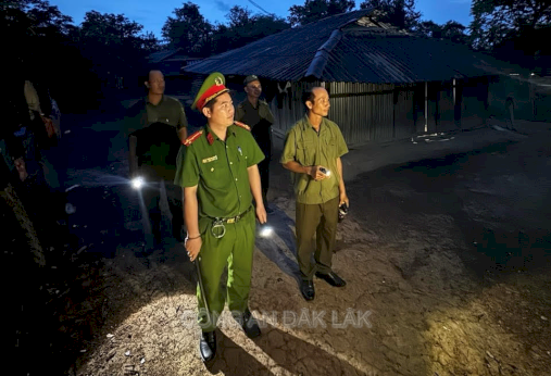 Lực lượng Công an xã bán chuyên trách tham gia tuần tra, kiểm soát bảo đảm ANTT cùng với Công an các xã ở huyện Krông Pắc