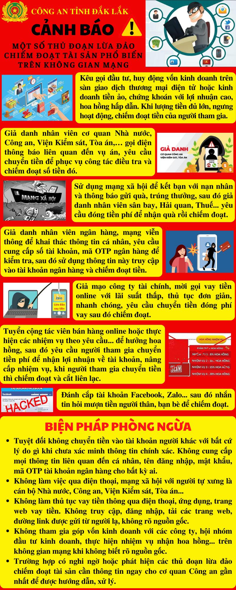 Hiện nay, hoạt động của tội phạm lừa đảo chiếm đoạt tài sản trên không gian mạng ngày càng gia tăng, phức tạp, với nhiều phương thức mới, tinh vi. Vì vậy, mọi người dân cần tự nâng cao tinh thần cảnh giác trước những thủ đoạn lừa đảo chiếm đoạt tài sản trên không gian mạng để không bị mắc bẫy.