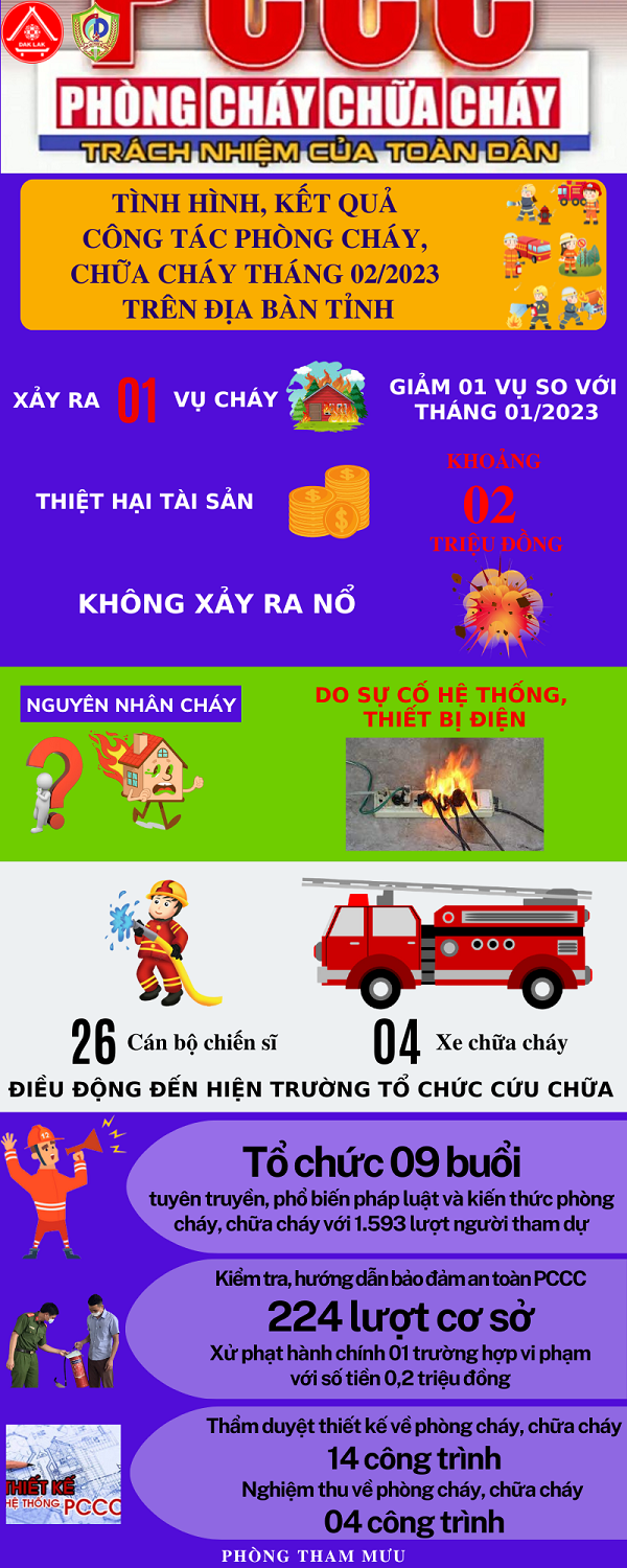 [Infographic]: Tình hình, kết quả công tác phòng cháy, chữa cháy tháng 02/2023 trên địa bàn tỉnh