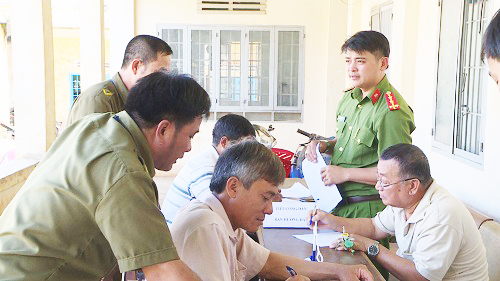 Lực lượng Công an xã vận động Nhân dân giao nộp vũ khí
