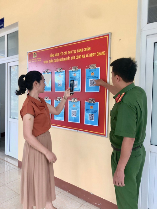 Thứ nhất, về triển khai sáng kiến, cải tiến niêm yết TTHC bằng mã QR: Nhằm thực hiện có hiệu quả chương trình chuyển đổi số, nâng cao hiệu quả phục vụ người dân và doanh nghiệp trong giải quyết TTHC, từ tháng 06/2022, Công an huyện đã triển khai niêm yết TTHC bằng mã QR tại tất cả các đơn vị giải quyết TTHC cho cá nhân, tổ chức từ cấp huyện đến cấp xã. Quá trình triển khai bước đầu đã mang lại lợi ích, sự thuận tiện cho người dân. Với cách làm này, người dân chỉ cần sử dụng điện thoại thông minh có kết nối Internet thực hiện quét mã QR là dễ dàng tra cứu thông tin, thực hiện thủ tục nhanh chóng, kịp thời, tiết kiệm chi phí, thời gian.