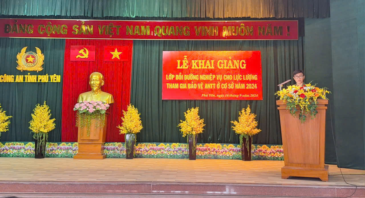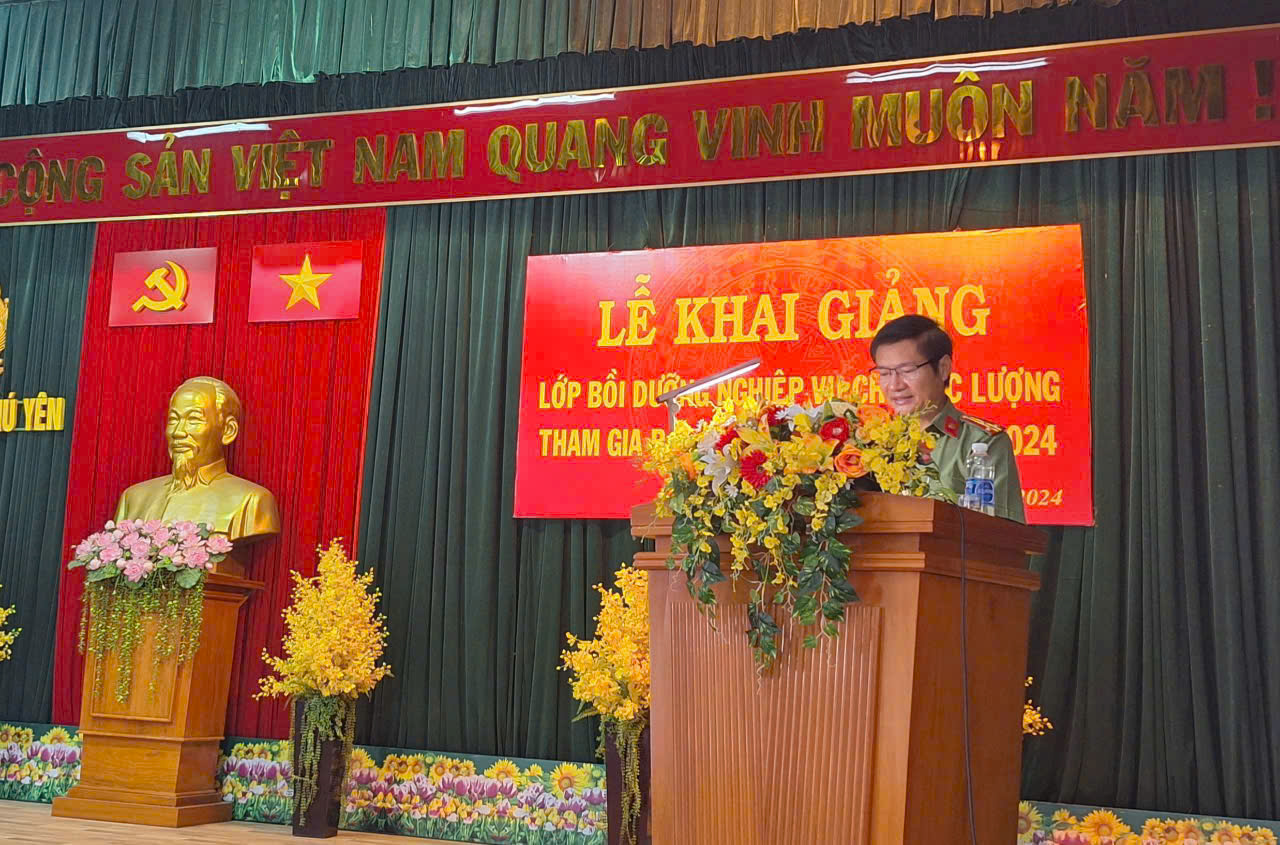Dự phát biểu khai giảng lớp bồi dưỡng nghiệp vụ có đồng chí Thượng tá Nguyễn Phong Lưu, Ủy viên Ban Thường vụ Đảng ủy, Trưởng Phòng Tham mưu Công an tỉnh. Cùng dự có các đồng chí là lãnh đạo Công an các đơn vị: PV01, PX01, PC06, PC07, PC08, PK02, Công an thành phố Tuy Hòa và đặc biệt là sự có mặt đông đủ của 188 đồng chí là lực lượng tham gia bảo vệ an ninh, trật tự ở cơ sở tham gia lớp bồi dưỡng nghiệp vụ đợt 1 năm 2024.