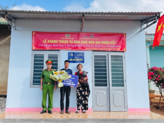 Căn nhà đại đoàn kết được xây dựng với diện tích 37,5m2 với sự chủ động, vào cuộc tích cực của Công an thị xã trong quá trình khảo sát, vận động kinh phí xã hội hóa, sự tài trợ về kinh phí của Ngân hàng Ngân hàng TMCP Ngoại thương Việt Nam - CN Bắc Đắk Lắk là 70 triệu đồng và một phần kinh phí từ Công an thị xã, sự hỗ trợ trong quá trình xây dựng từ Công ty xây dựng Việt Châu.