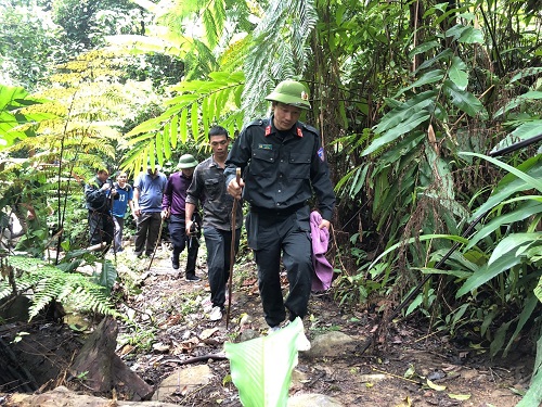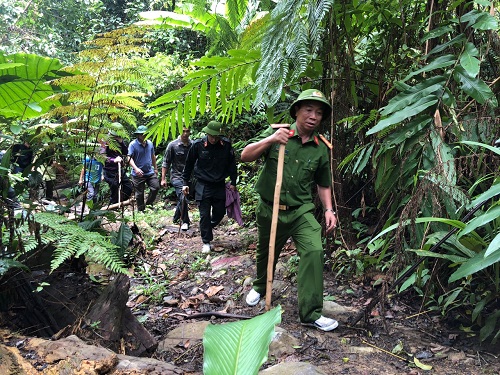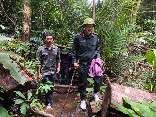 Đ/c Giám đốc Công an tỉnh và Giám đốc Sở Nông nghiệp và Phát triển nông thôn trực tiếp cùng Đoàn công tác vượt đèo, lội suối vào khảo sát hiện trường nơi các đối tượng khai thác gỗ trái phép.