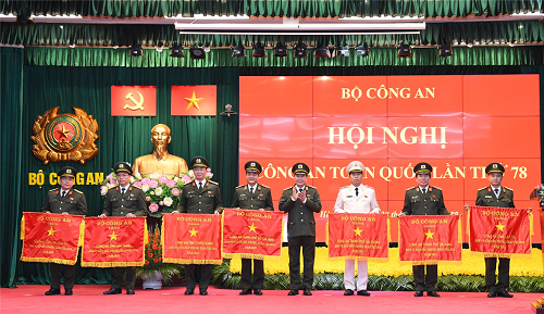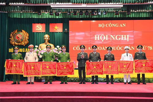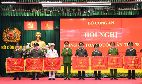 Thừa uỷ quyền của Thủ tướng Chính phủ, Bộ trưởng Tô Lâm trao Cờ thi đua của Chính phủ tặng Cục An ninh đối ngoại; Cục Kỹ thuật nghiệp vụ; Cục B04; Cục Tổ chức cán bộ; Văn phòng Bộ Công an; Bộ Tư lệnh Cảnh vệ; Bộ Tư lệnh Cảnh sát cơ động; Cục Cảnh sát điều tra tội phạm về tham nhũng, kinh tế, buôn lậu; Cục Cảnh sát điều tra tội phạm về ma tuý; Cục Cảnh sát quản lý hành chính về trật tự xã hội; Cục An ninh kinh tế; Cục Kế hoạch và Tài chính; Cục Hậu cần; Cục Hồ sơ nghiệp vụ; Cục An ninh chính trị nội bộ; Công an thành phố Hà Nội; Học viện Cảnh sát nhân dân; Học viện Quốc tế; Trường Cao đẳng Cảnh sát nhân dân II; Công an các tỉnh: Lạng Sơn, Quảng Ninh, Nghệ An, Hà Nam, Hải Dương, Đắk Lắk, Đắk Nông, Quảng Nam, Đồng Tháp, Trà Vinh.