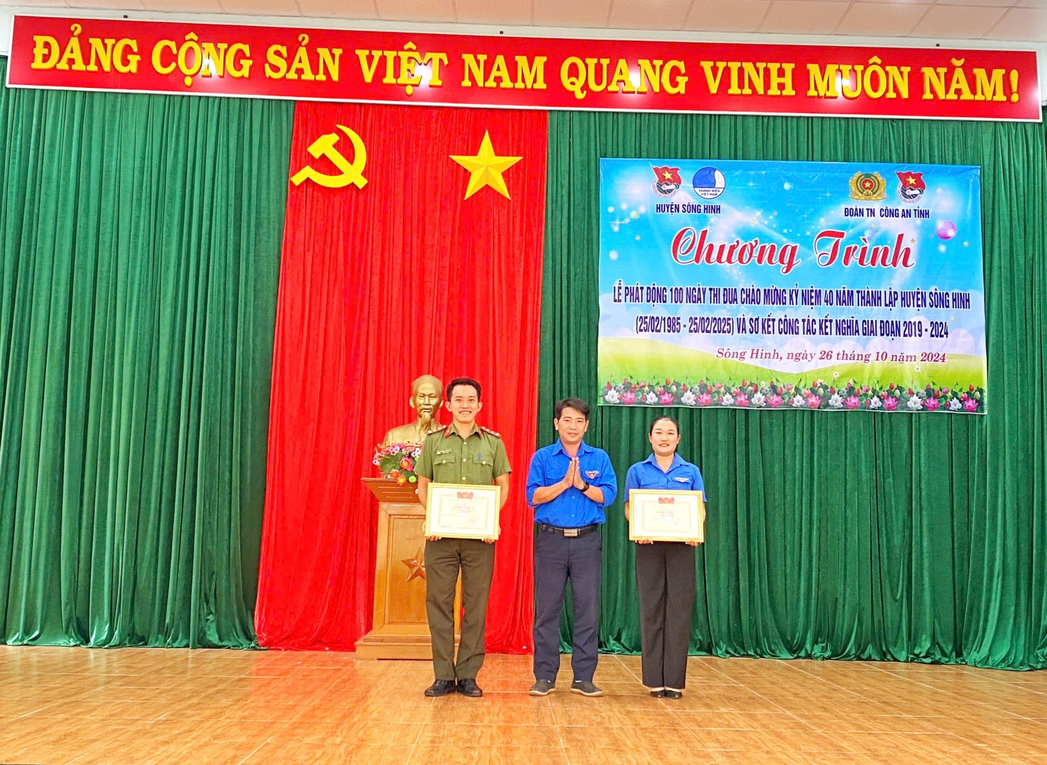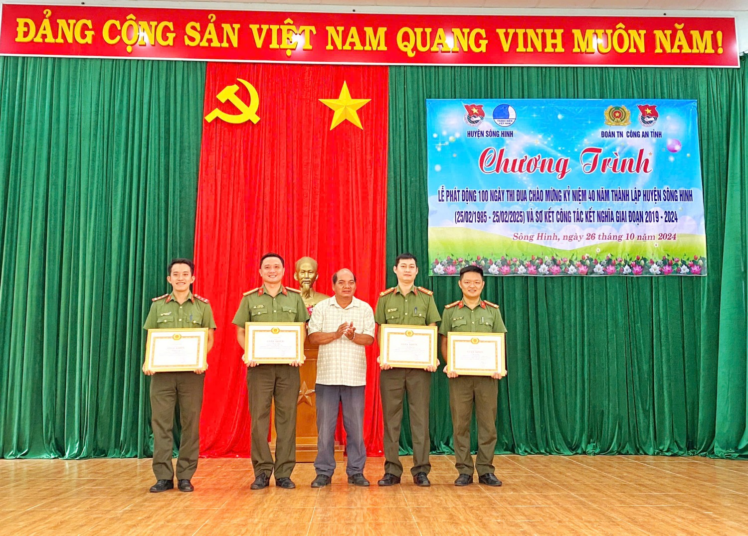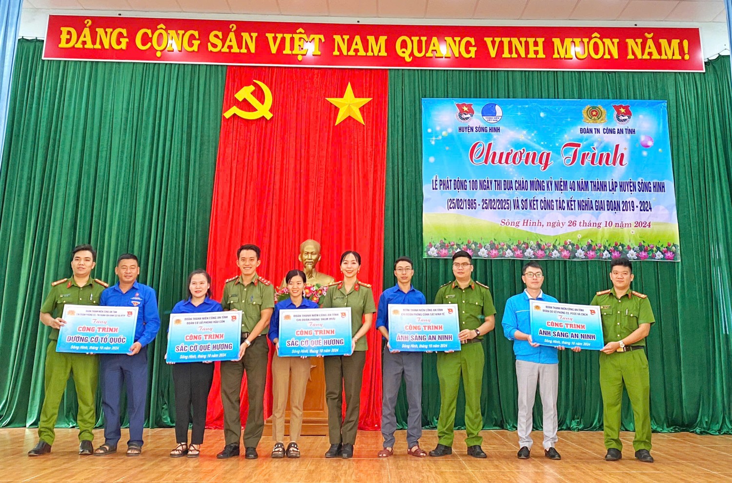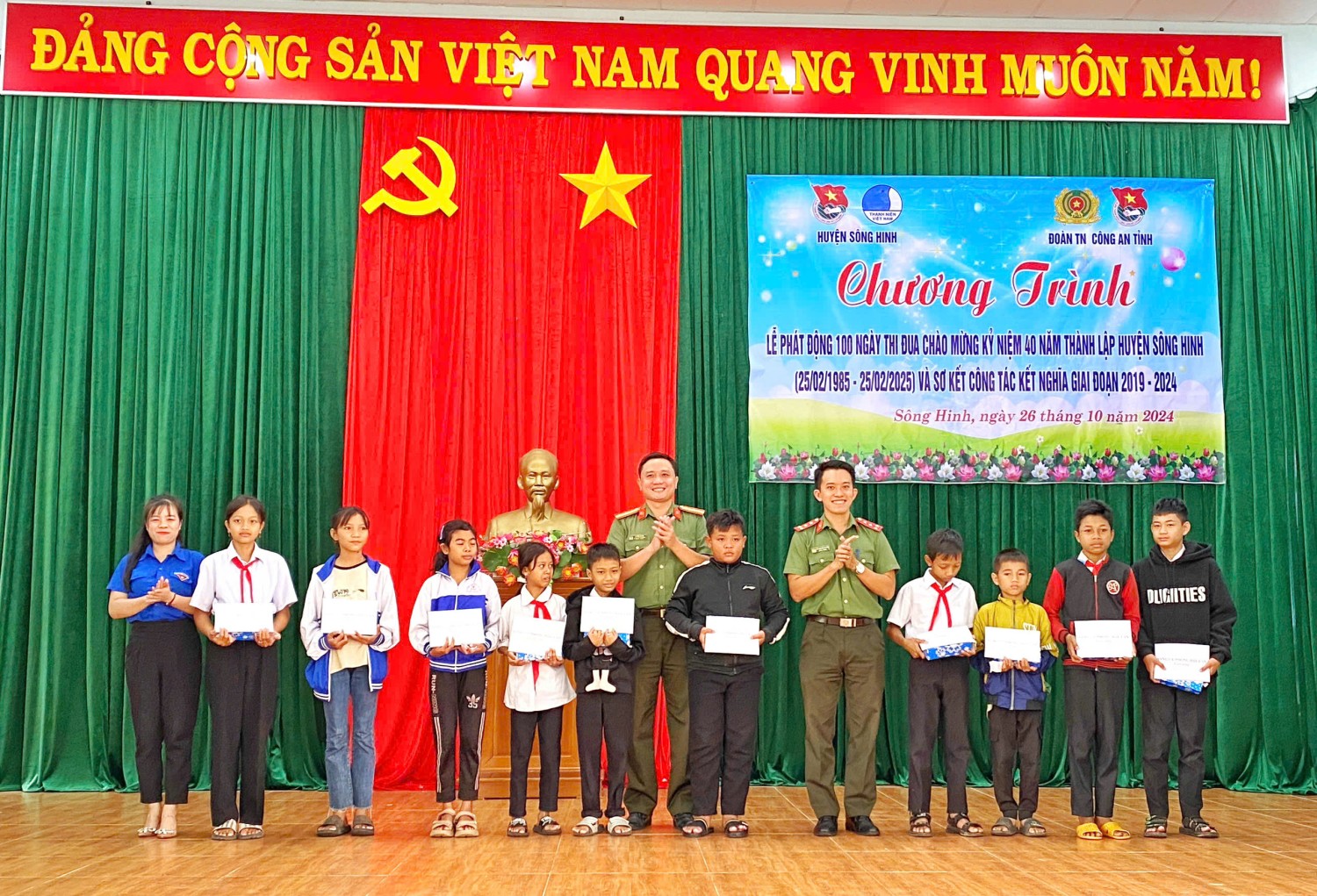 Tại chương trình Đoàn thanh niên, Hội phụ nữ Phòng Hậu cần đã trao tặng 10 suất quà học bổng cho các em học sinh có hoàn cảnh khó khăn vươn lên học giỏi tại địa bàn xã Ea Trol, trao tặng công trình "Sắc cờ quê hương" cho Xã đoàn Ea Lâm, huyện Sông Hinh, tổng kinh phí trao tặng 15 triệu đồng.