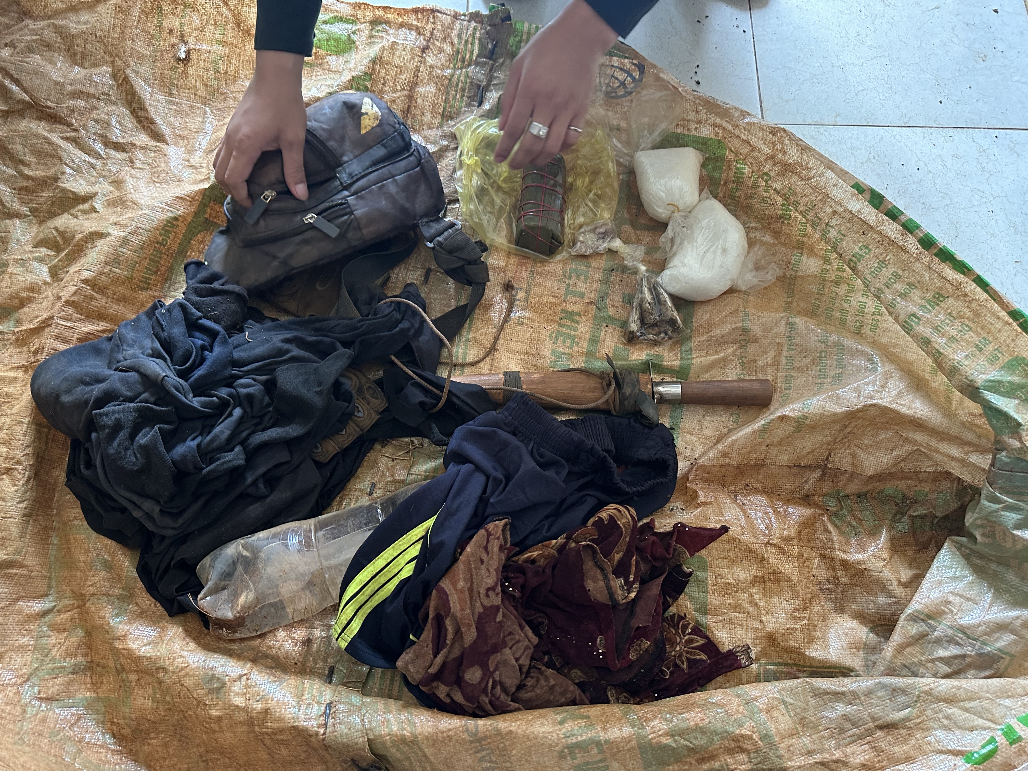 Các đối tượng bị bắt giữ cùng vũ khí lực lượng công an thu giữ