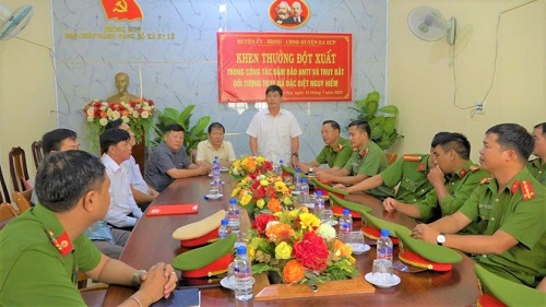 Thay mặt lãnh đạo tỉnh và huyện, đồng chí Nguyễn Thiên Văn – Tỉnh ủy viên, Phó Chủ tịch UBND tỉnh, kiêm Bí thư Huyện ủy, Chủ tịch HĐND huyện đã biểu dương tinh thần, gửi lời chúc mừng, ghi nhận và đánh giá cao những kết quả, thành tích mà các đơn vị và nhân dân đã đạt được trong công tác truy bắt đối tượng truy nã đặc biệt nguy hiểm. Cùng với đó bày tỏ mong muốn thời gian tới, các đơn vị tiếp tục phát huy những thành tích, kết quả đạt được, hăng hái với trách nhiệm cao nhất trong thực hiện nhiệm vụ nhằm đảm bảo ANTT, bảo vệ tính mạng, tài sản cho người dân; kịp thời đấu tranh, điều tra, xử lý nghiêm minh các vụ việc, đối tượng có liên quan và phát huy vai trò lãnh đạo của cấp ủy đảng, chính quyền các cấp không để địa bàn huyện trở thành nơi trú ngụ của các loại tội phạm xâm nhập vào.